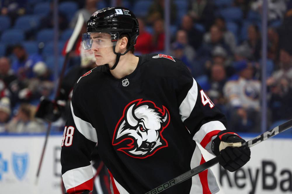 As the Sabres took a 2-1 lead late in the first period on a rush chance, Heinola was unable to prevent a cross-ice pass by former Winnipeg Ice forward Zach Benson and Stanley was unable to tie up the stick of Dylan Cozens, despite being right beside him.