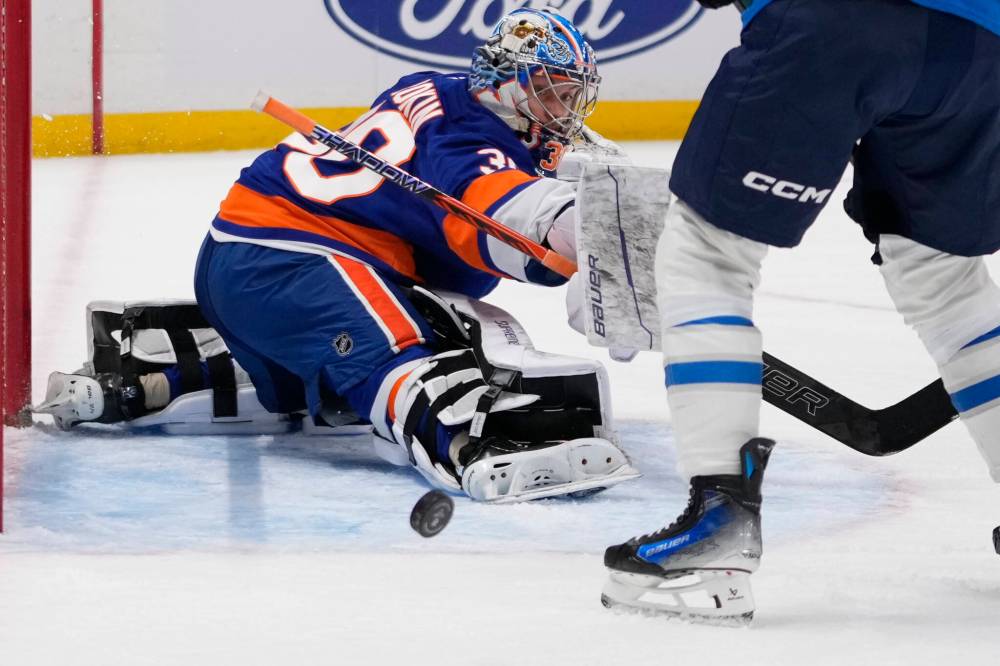 With Anders Lee serving a high-sticking minor, the Jets snapped the puck around before defenceman Josh Morrissey unloaded a slapshot that changed direction off the stick of Islanders forward Simon Holmstrom and fooled goalie Ilya Sorokin.
