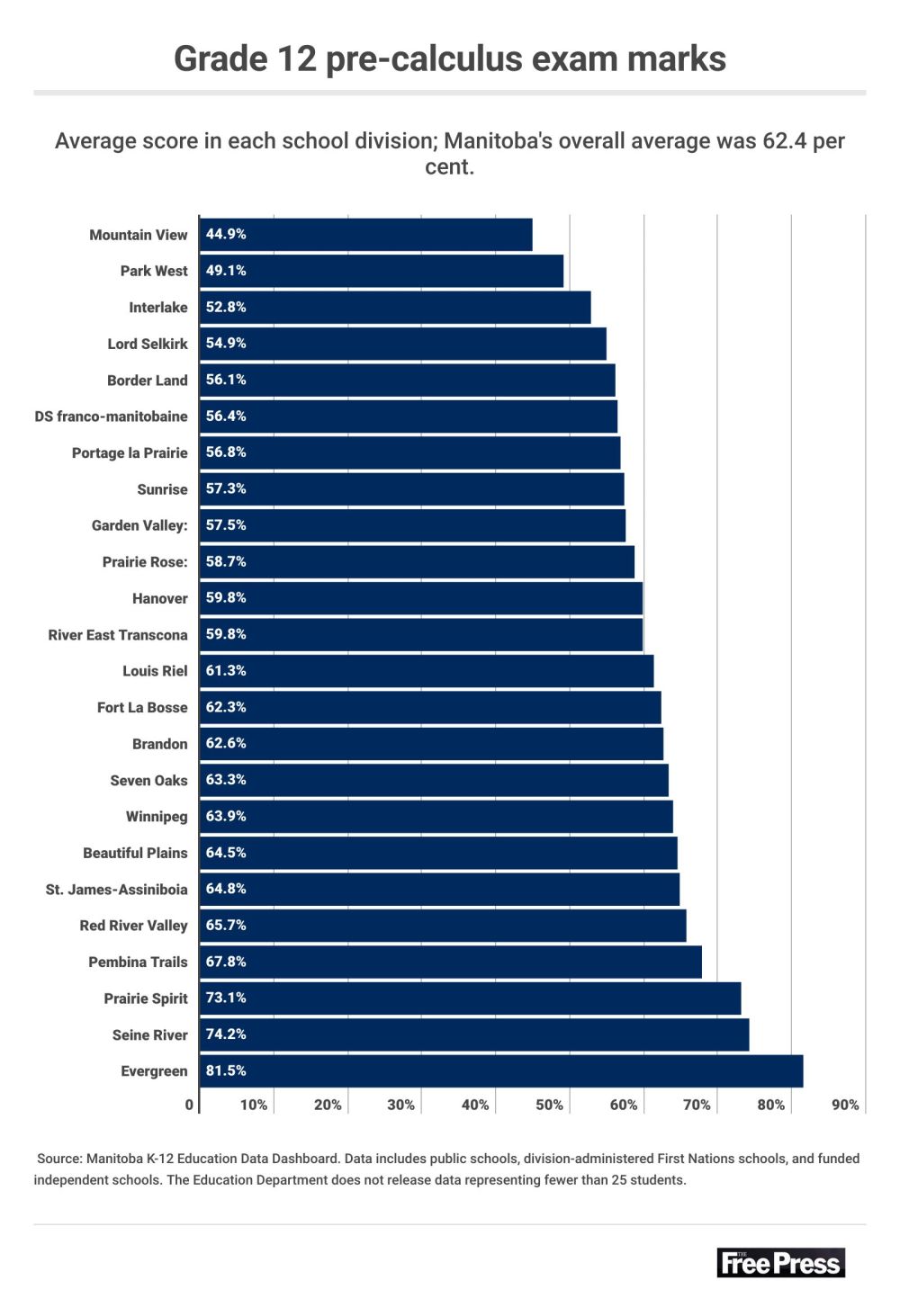 The Mountain View School Division recorded the lowest pre-calculus average in the province in 2023-24. Senior leaders in Dauphin did not respond to multiple requests for comment about their plans to bolster math scores.