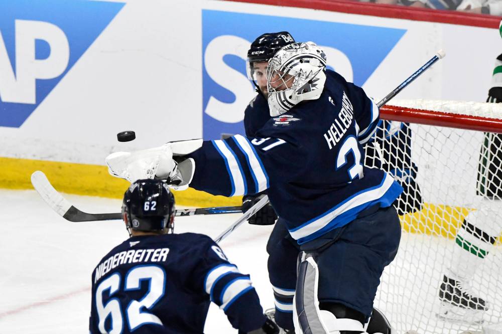 Jets goalie Connor Hellebuyck finished with 21 saves, while Stars goalie Jake Oettinger finished with 30 and was serenaded with “U.S. backup” chants during the second period.