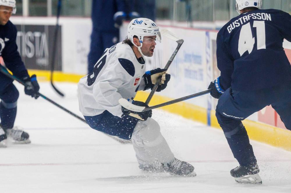 After two intense days of drills, the scrimmage offered players a chance to loosen up — though Schenn set an early tone with a couple of big hits on teammates temporarily wearing the opposition’s colours.