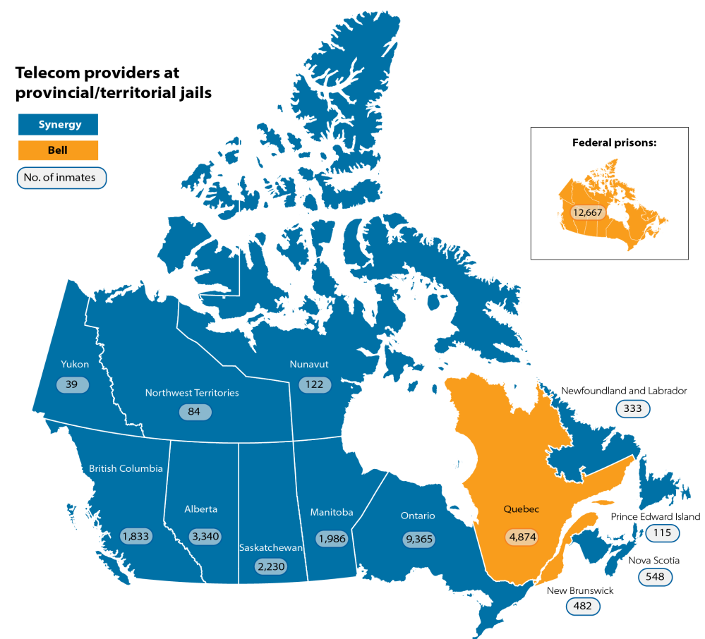And in Synergy’s case, it’s a market subject to limited regulatory oversight. In roughly 15 years, starting in 2010, Synergy went from holding zero contracts, to working with 12 out of 13 provincial and territorial corrections systems, according to a Free Press analysis. (The sole provincial holdout is Quebec, which uses Bell, as does the federal corrections system.)