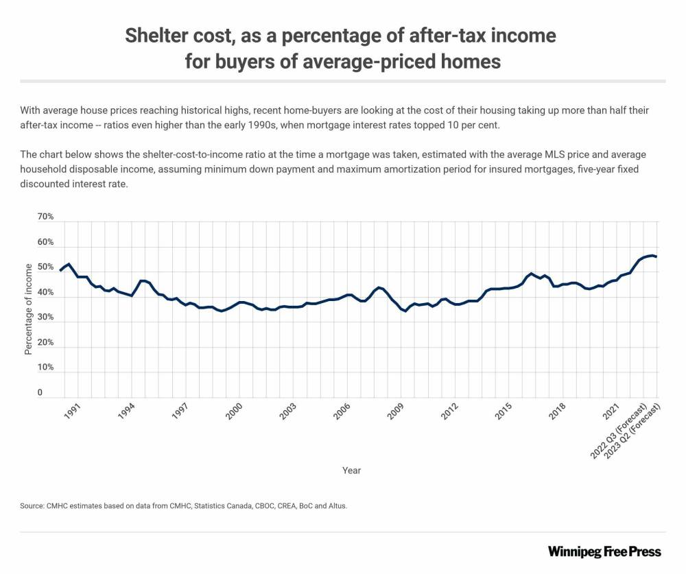 A Canada Mortgage and Housing Corp. report released Thursday concurred with the RBC report showing that affordability has not been this low since 1990, when interest rates were at 10 per cent. (They’re at five to six per cent now.)