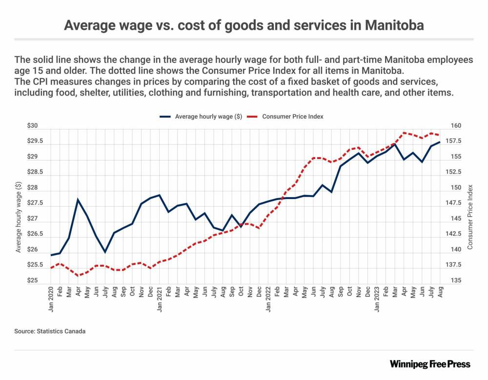 Over the past two years, the general price of goods in Manitoba has increased 15.6 per cent. Meanwhile, median wages in the province have increased around 10 per cent.