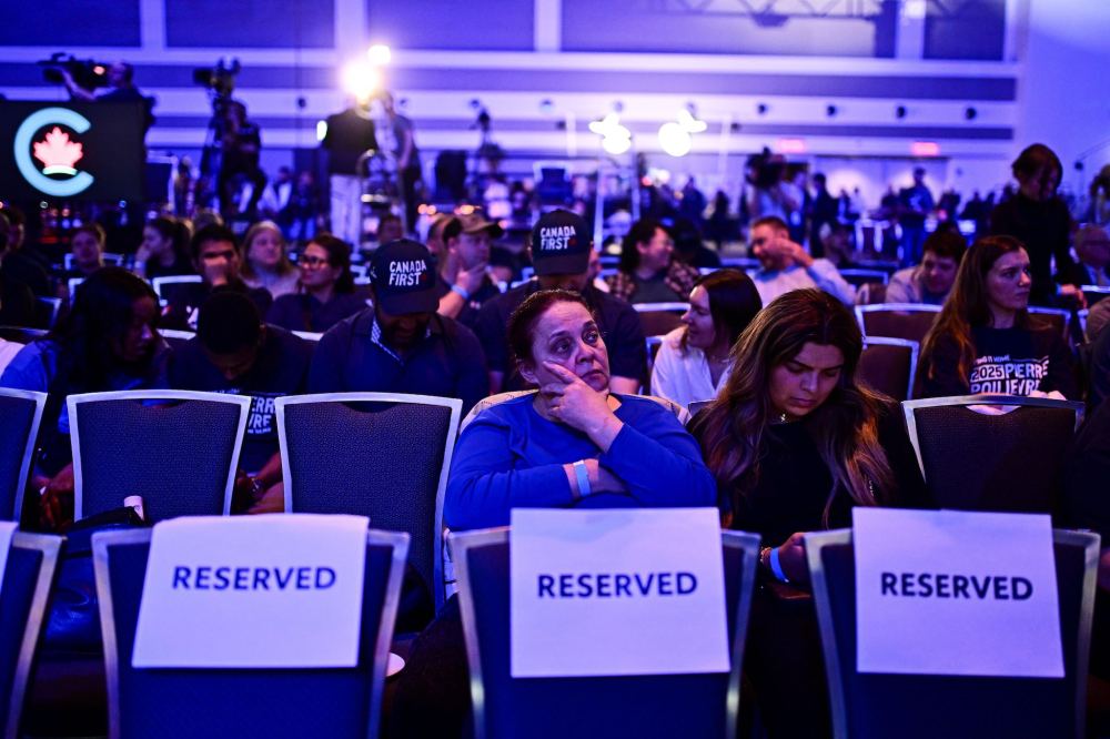 Some of his supporters hugged one another and cried as Poilievre delivered his concession speech at the party’s election night headquarters in downtown Ottawa, with his wife Anaida by his side.
