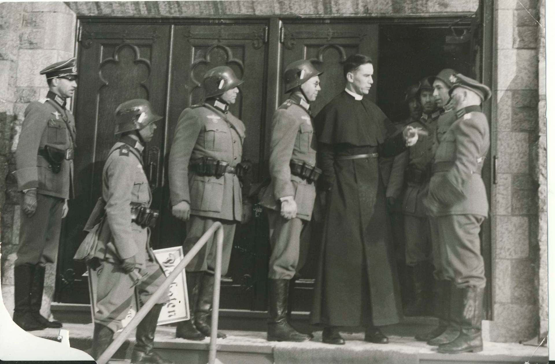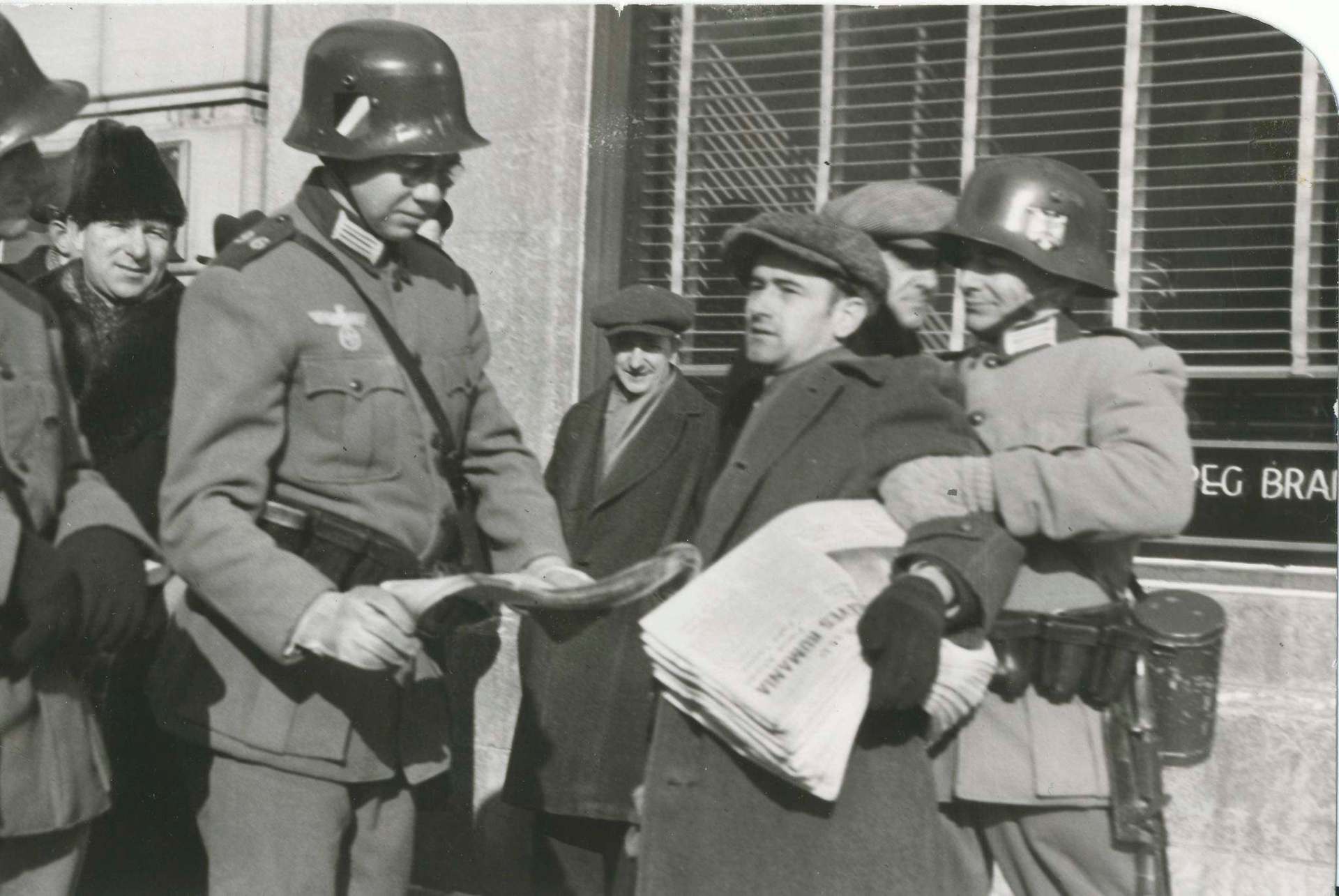 Those trying to go about their business despite the commotion ran into difficulty. Random roadblocks were set up, with Nazi troops stopping buses and streetcars asking to see identity papers. Some coffee shops and stores handed back worthless “Reichsmark” notes as change. Churches were closed, with notices posted on their doors religious services were no longer permitted.