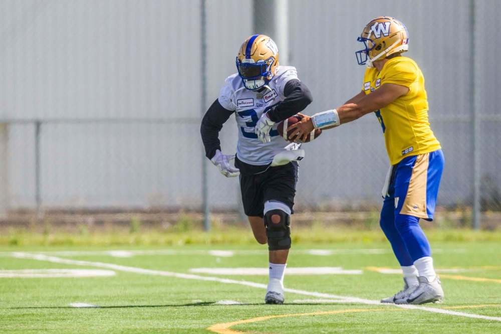 Andrew Harris, the man who has won three consecutive CFL rushing titles, hasn’t played a down this season due to a calf injury suffered training camp. He was fairly active during Wednesday’s workout, getting some first-team reps when second-year man Brady Oliveira wasn’t carrying the ball.