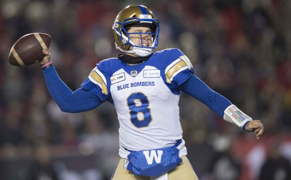 Blue Bombers quarterback Zach Collaros is leading the CFL in passing yards with 2,148.