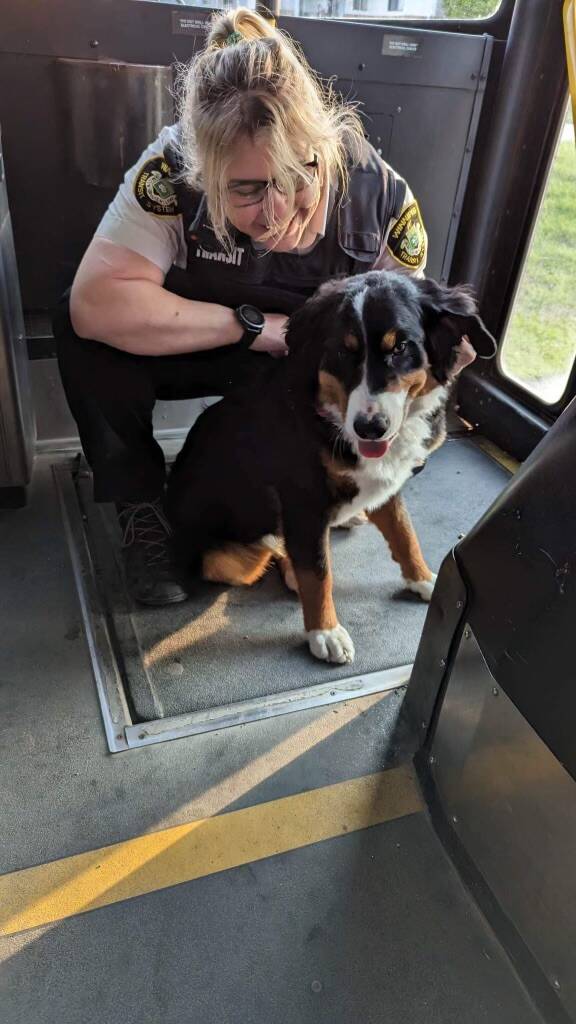 The owners of a Bernese Mountain Dog that hitched a ride on a city bus this week want to thank the driver who kept the puppy safe and ensured her homecoming with — at the very least — the price of a one-way ticket.