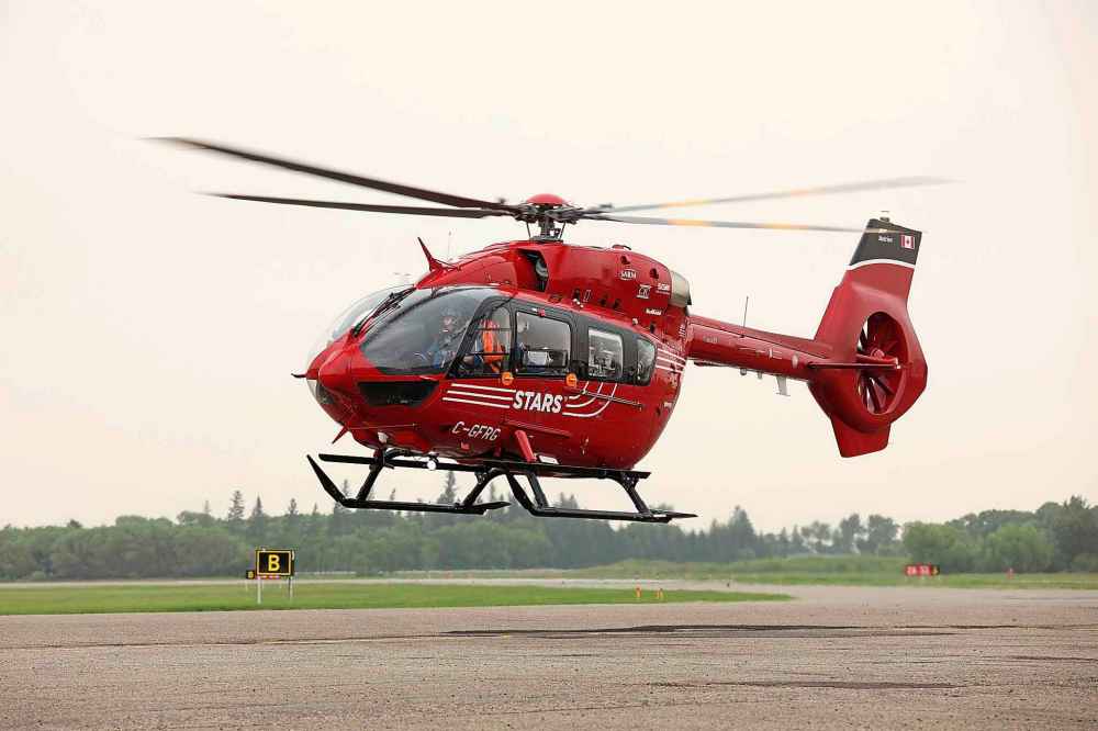 A STARS Air Ambulance takes flight from the Brandon Municipal Airport to transport a victim of the Trans Canada Highway mass casualty collision at Carberry to the Health Sciences Centre in Winnipeg. (Tim Smith / The Brandon Sun)