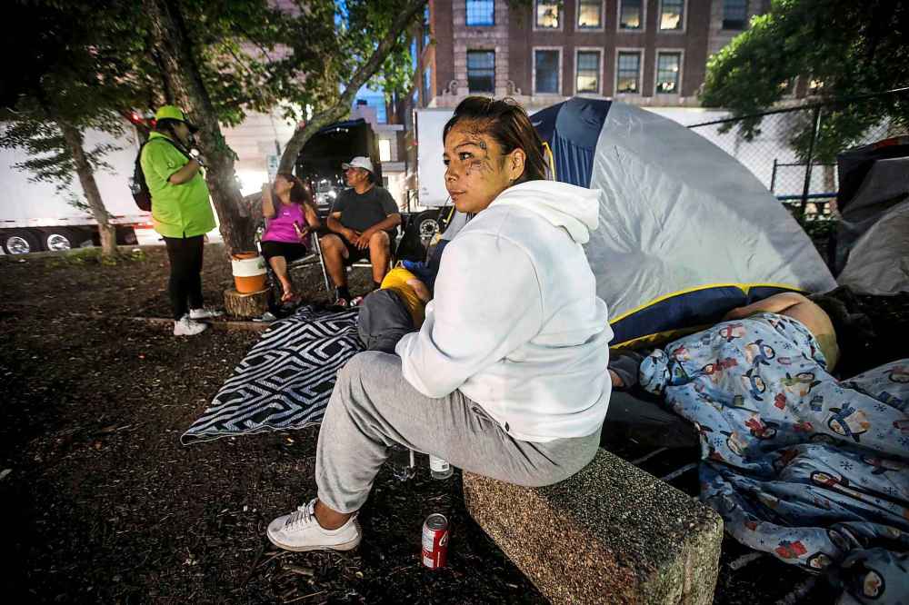 Sitting on a tarp in the shade of a giant elm, they sip cold drinks from a nearby Starbucks.