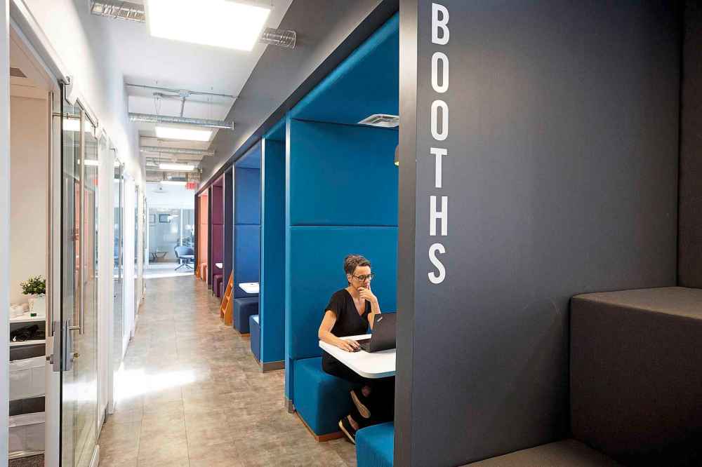 Seated on tall stools along a long, narrow countertop, Nosa Omoregie and Ola Abijo are finishing up some work on their laptops, their Gusto North pizzas by now reduced to crumbs on their plates.