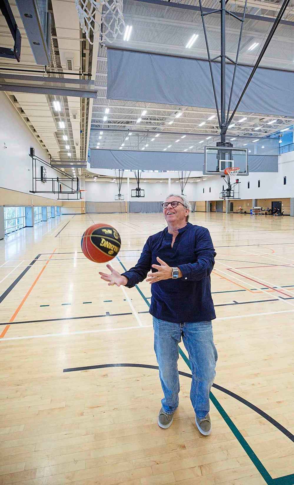 Tonight, the floor serves as the pit for a rock concert. Tomorrow night, it’ll be a basketball court.