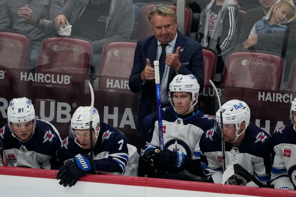 Marta Lavandier / The Associated Press Winnipeg Jets head coach Rick Bowness gestures to the team during the first period of their game against the Florida Panthers, Friday.
