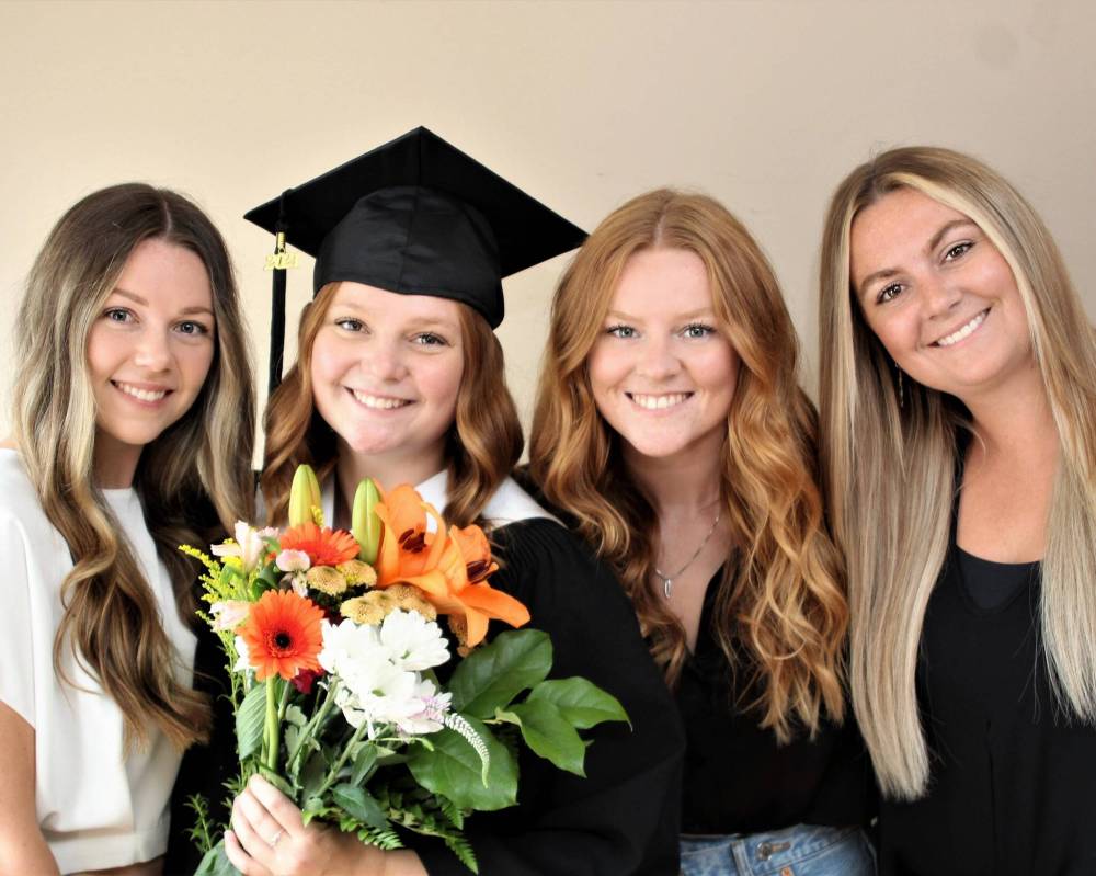 Submitted photo Jordyn Reimer and her three sisters at Jordyn’s University of MacEwan Bachelor of Arts Degree graduation in 2021. From left to right, Nicole Reimer, Jordyn Reimer, Andrea Reimer and Alexandra Reimer.