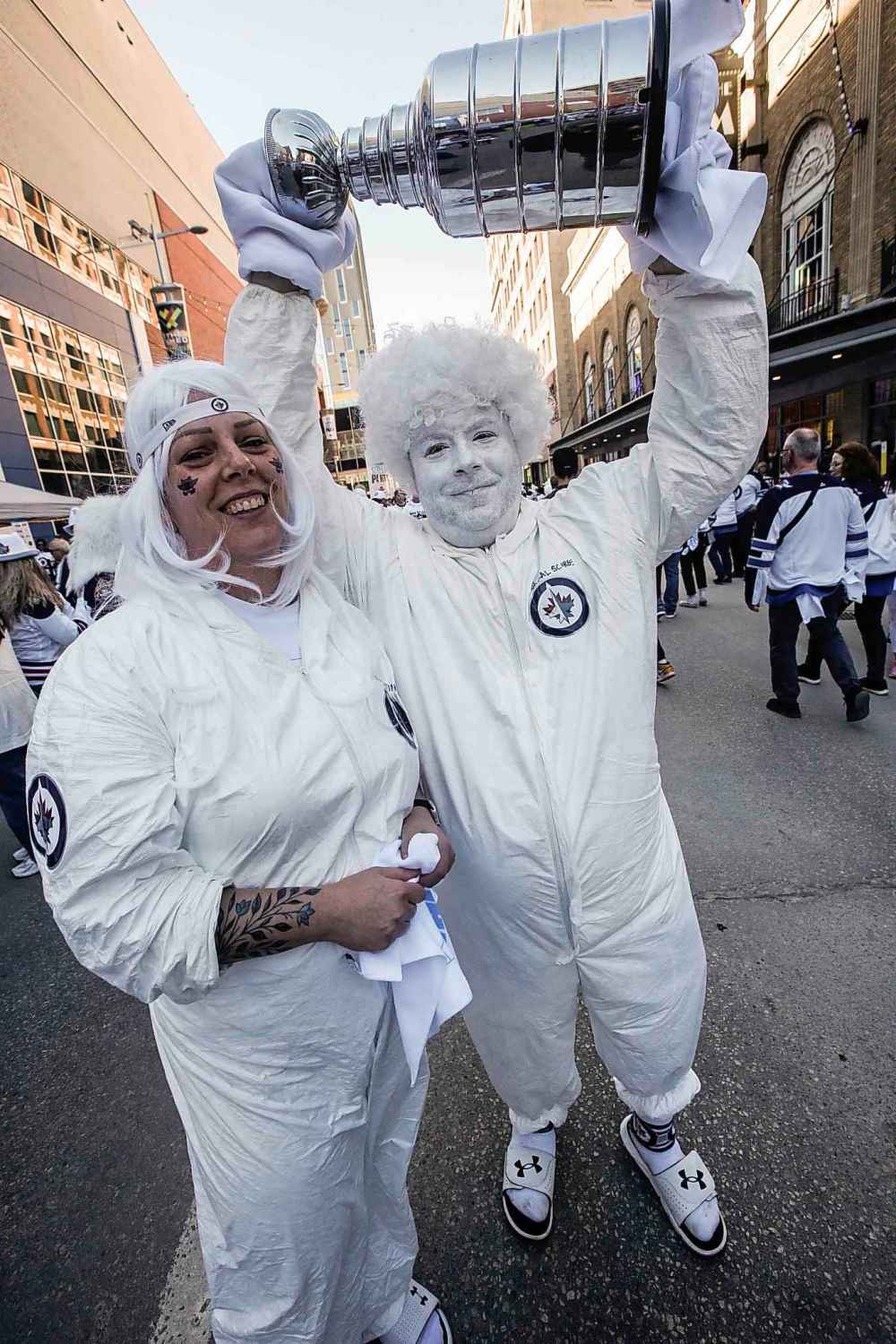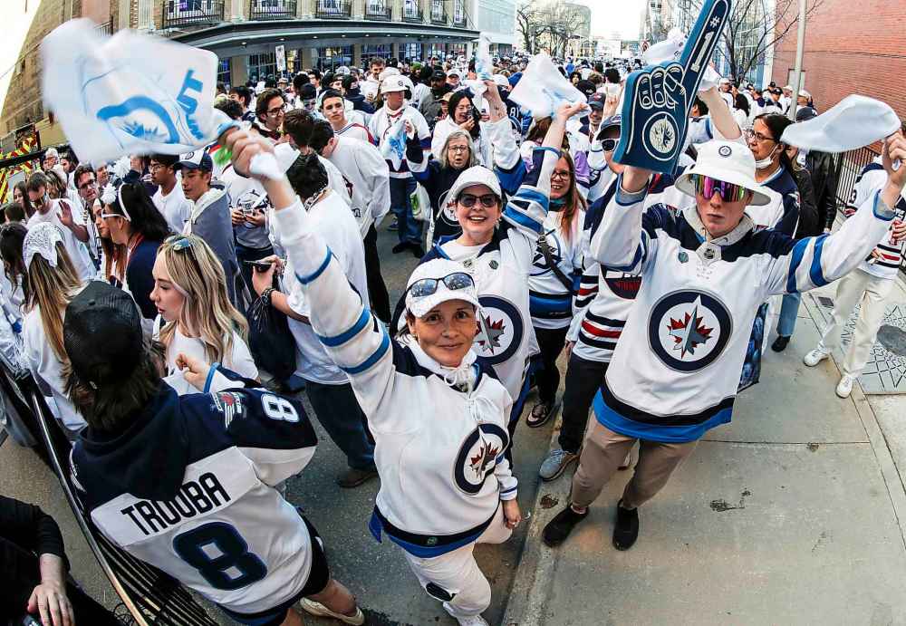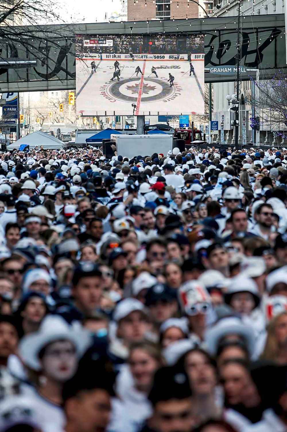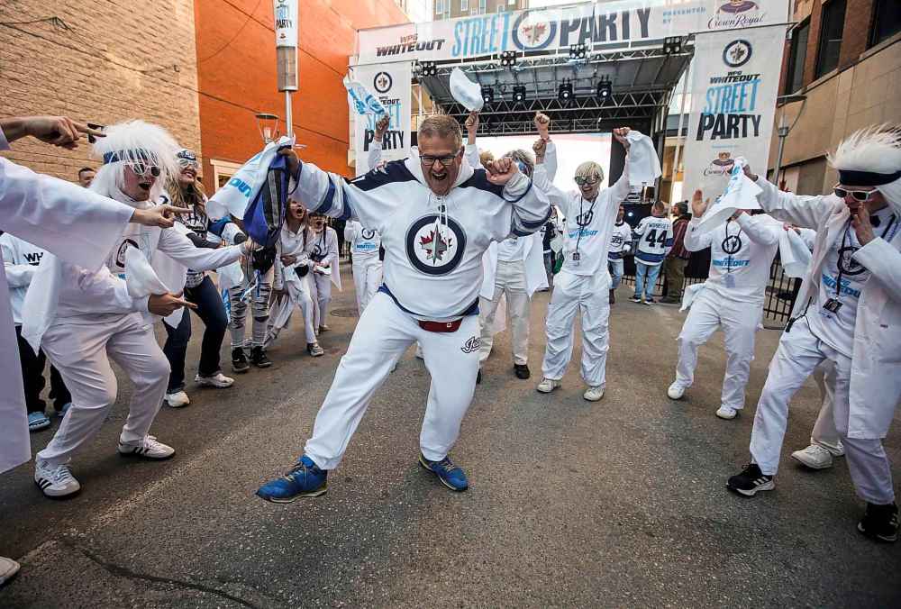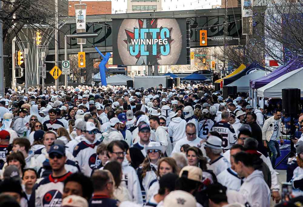 On game days, fans gather for a street party on Donald Street, organized by True North Sports and Entertainment, the corporation that owns the NHL franchise and Canada Life Centre.
