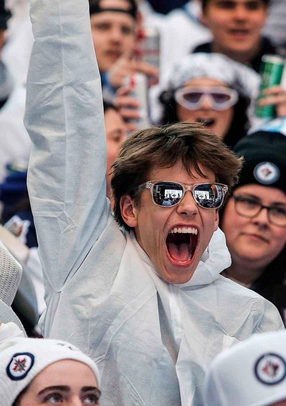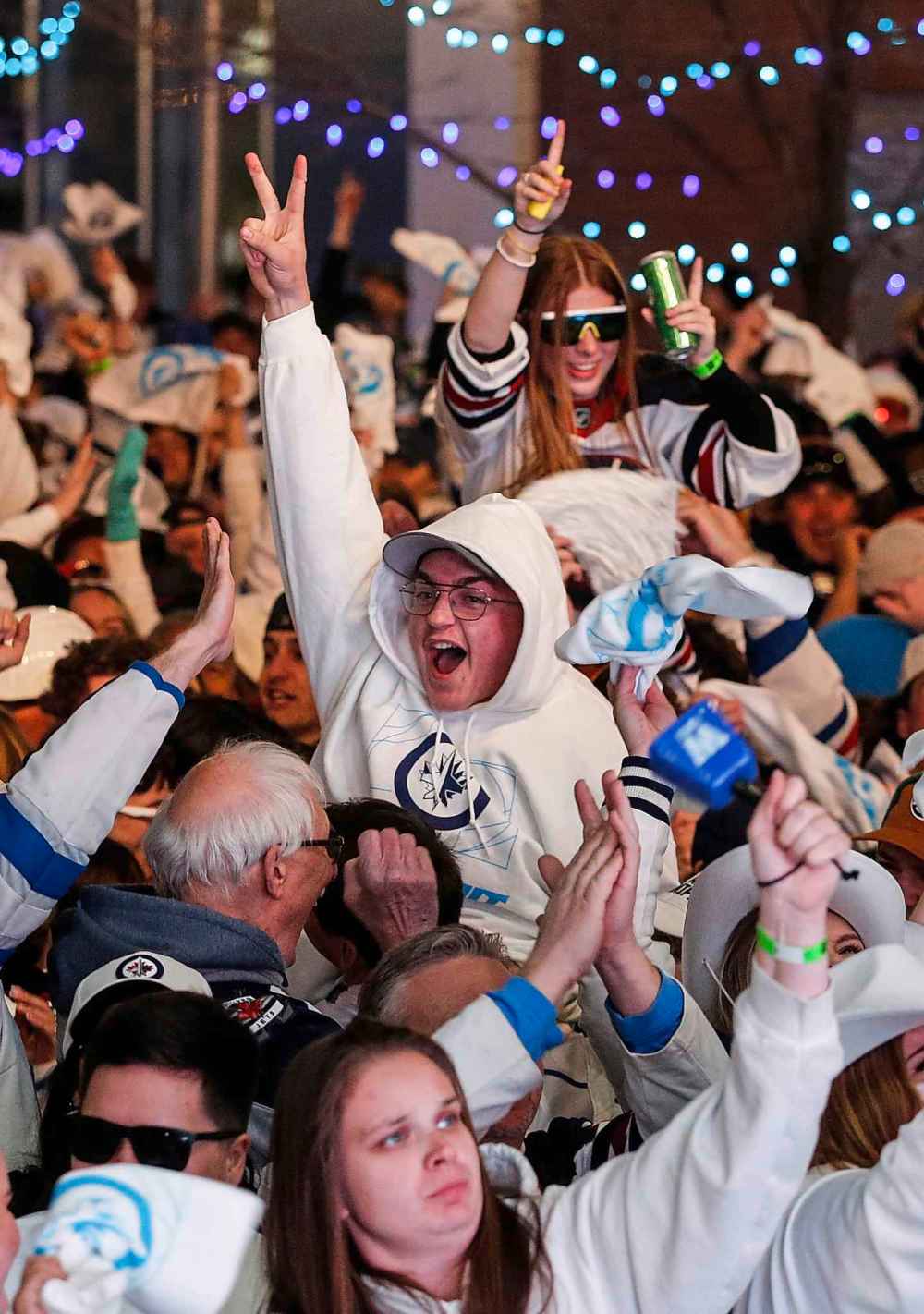 Jets fans let out a cheer the Whiteout party Tuesday evening.