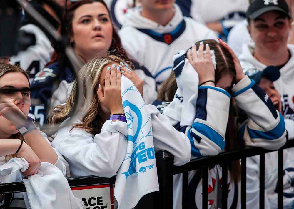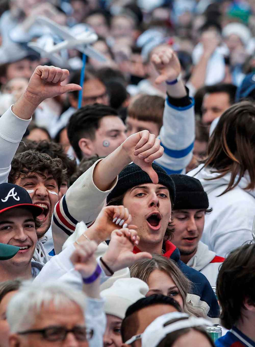 Fans react to action on the ice at the Whiteout party on Sunday.