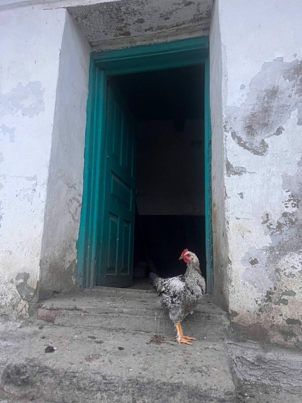 We slow the car to a halt at the house’s front gate. As we approach, a small brown dog in the yard erupts into a cacophony of frenzied barking. Alerted by the commotion, a woman rushes out of the house’s teal-blue door, peering at us with a surprised and cautious gaze.