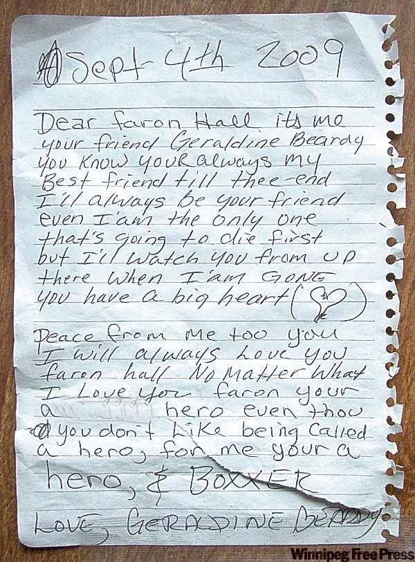 Back in his 11th-floor apartment with a view of the river, Faron re-read a prophetic letter from Geraldine that he had taped to his fridge.