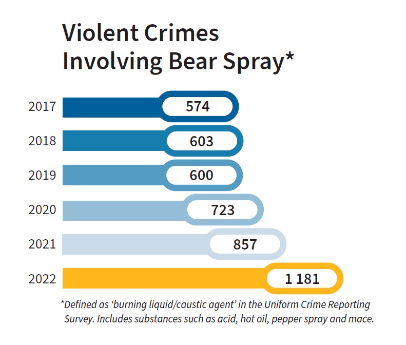 The use of bear spray in violent crimes on Winnipeg streets has more than doubled since 2017, from 574 incidents to 1,181 in 2022. That brings into focus the reason the provincial government took action earlier this year to more strictly regulate sales.