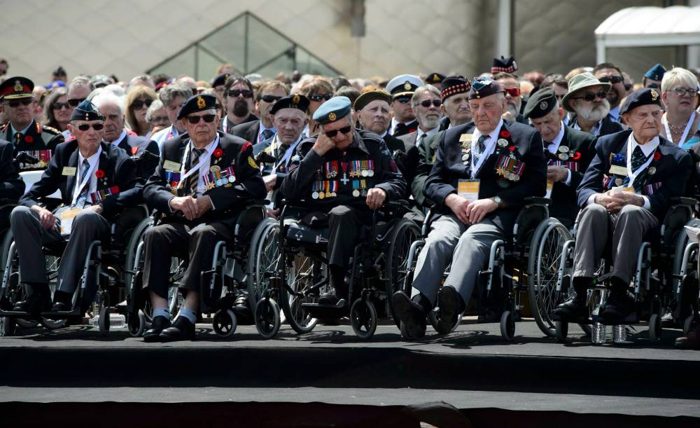 Veterans takes part in the D-Day 75th Anniversary Canadian National Commemorative Ceremony at Juno Beach in Courseulles-Sur-Mer, France on June 6, 2019. (Sean Kilpatrick / The Canadian Press files)