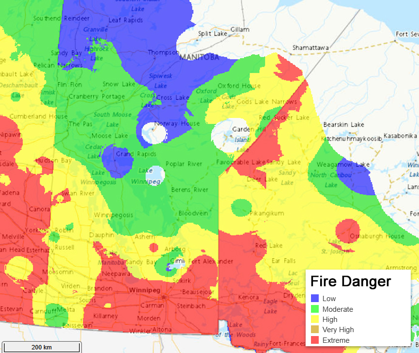 Smoke from wildfires causing poor visibility shuttered several highways, including Highway 315 from Bird River to the junction of Highway 314, the junction of highways 315 and 313, as well as Highway 314 from the junction of Highway 315 and Highway 304.