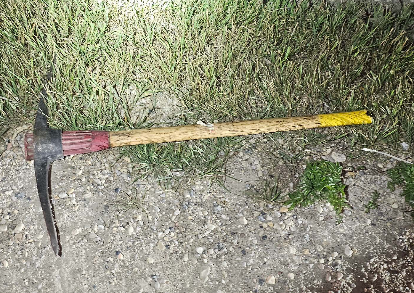 Police said Wednesday that officers found a 32-year-old community resident walking on Highway 278 while armed with a pickaxe. A razor blade was found in the male’s mouth.