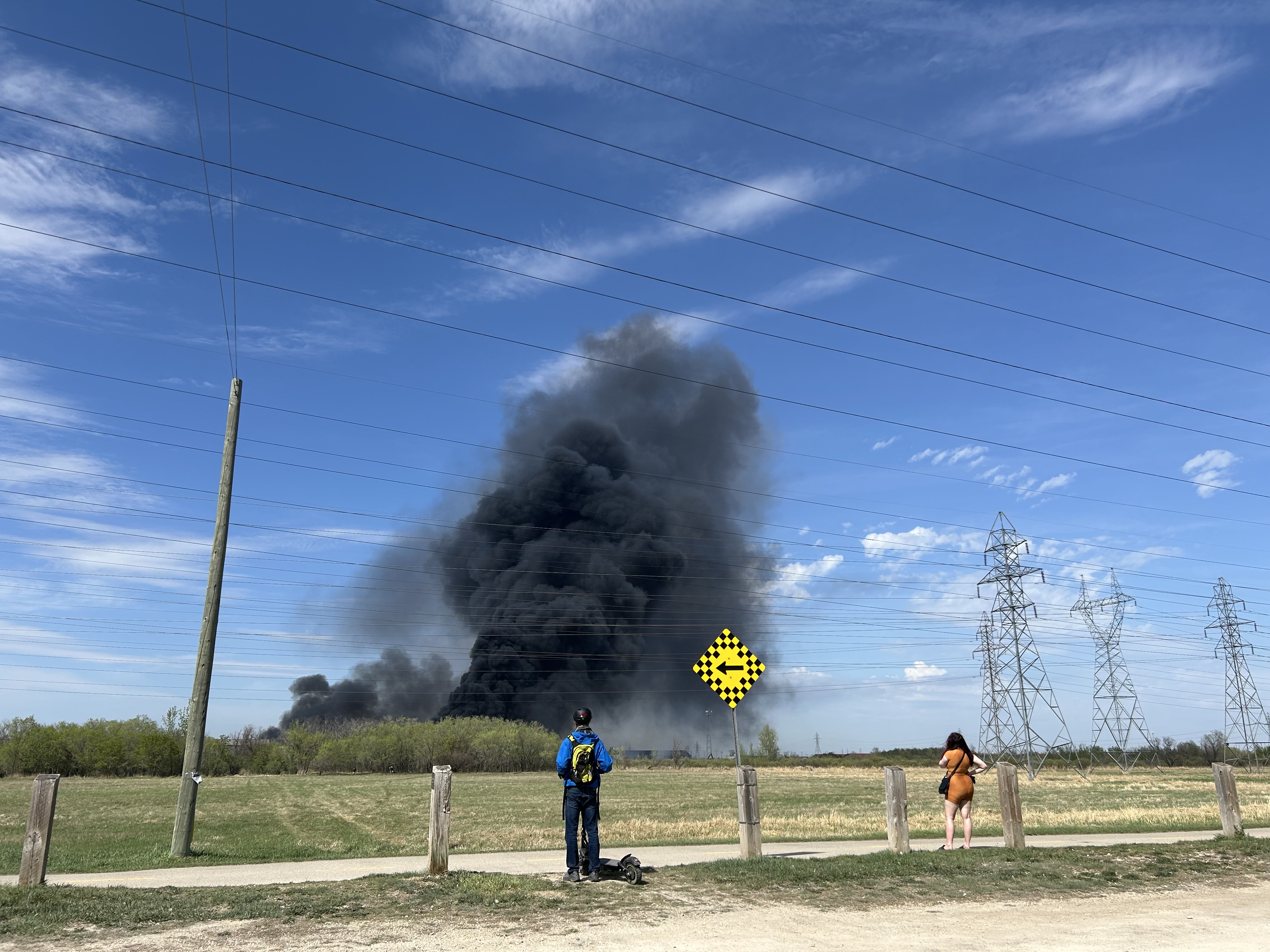Manitoba Hydro said in a social-media post that more than 1,200 customers are without power so that firefighters can safely battle the blaze. The public utility estimated on its website that power would be out until shortly after 6 p.m.