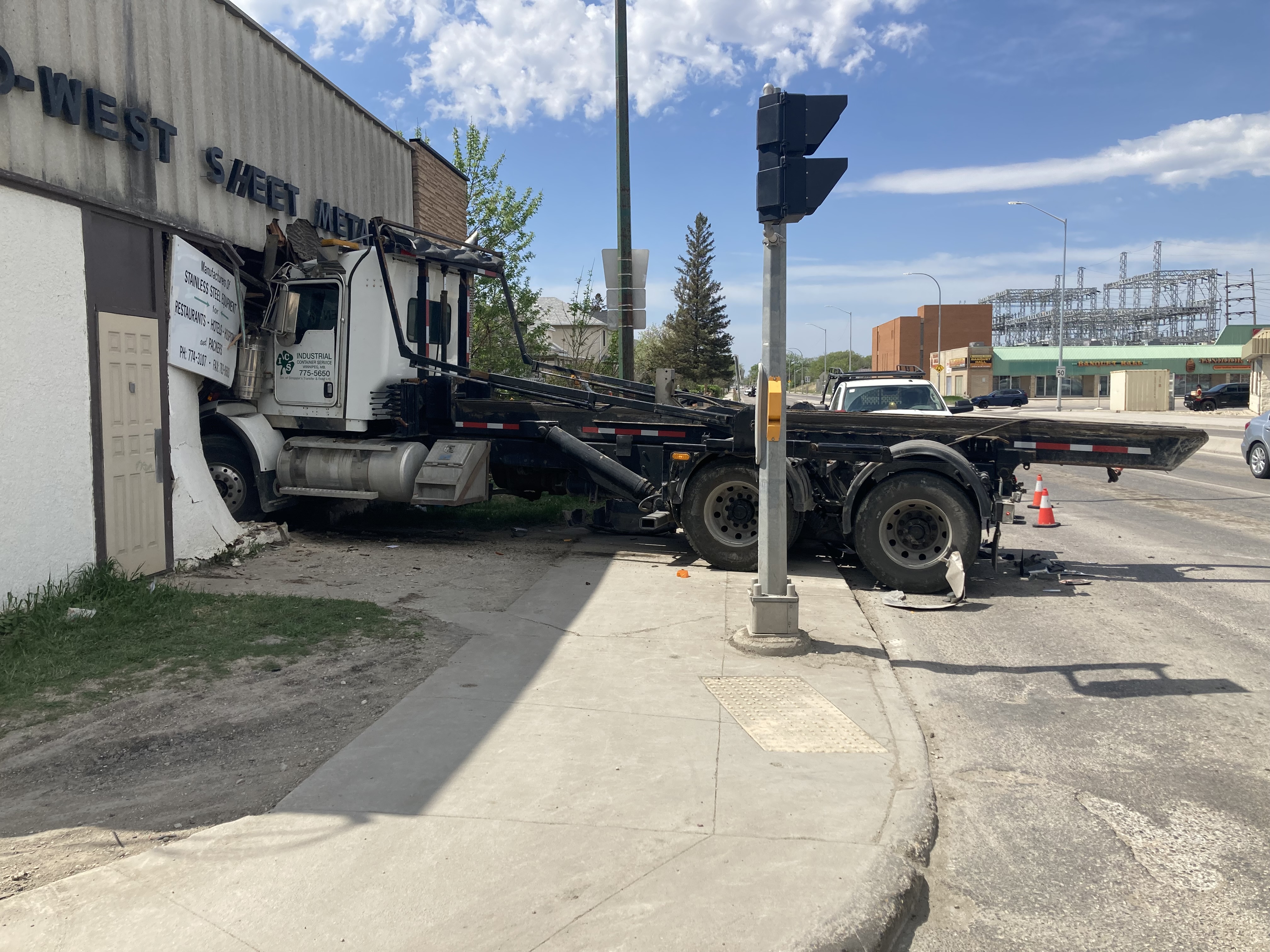 A semi-truck crashed into a business at the intersection of Logan Avenue and McPhillips Street on Monday afternoon.