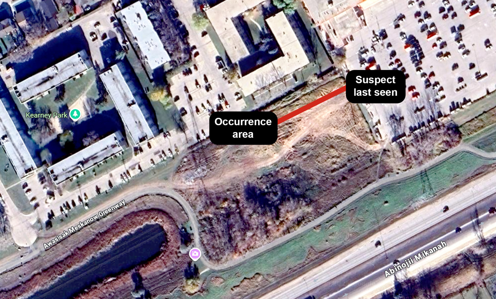 The area is just southeast of Kearney Park and south of the 200 block of Beliveau Road.