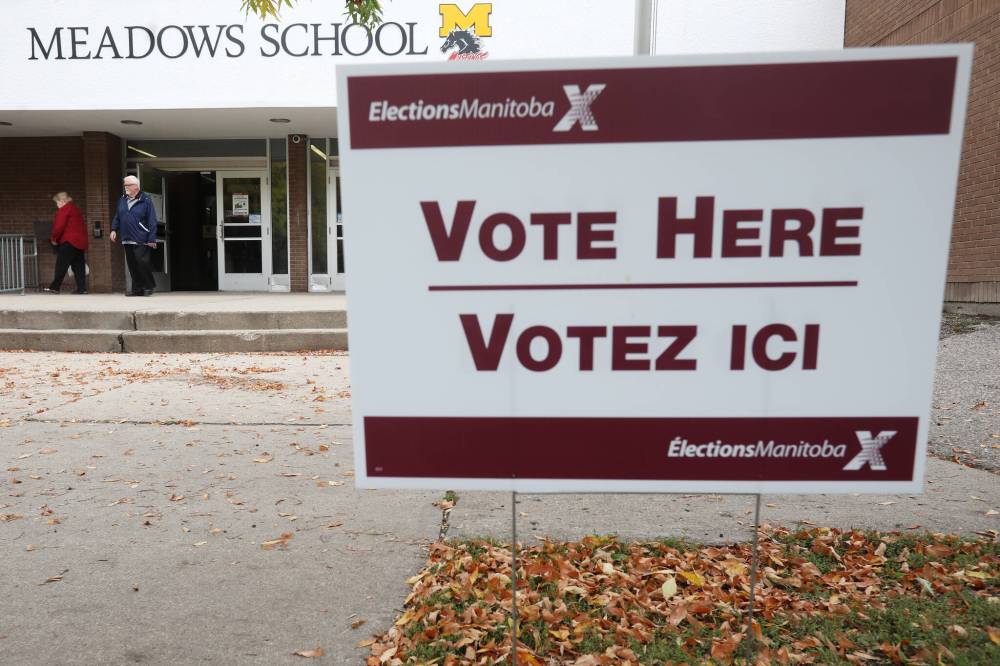 People leave the Elections Manitoba polling station at Meadows School during the last provincial election in 2019. A number of changes in Manitoba will bring voting in the province into the 21st century.