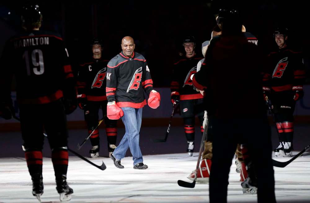 These co-ordinated post-game productions are seemingly getting more lavish with each victory, and there’s no question fans inside PNC Arena are eating them up. Heck, Evander Holyfield even got involved recently, delivering a mock knockout punch to Brandon’s Jordan Martinook, a forward for the Hurricanes, after they beat St. Louis last Friday.