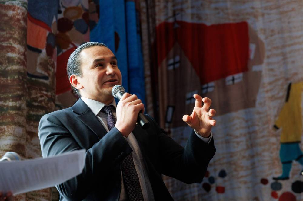 Premier Wab Kinew takes part in the Downtown Winnipeg BIZ speaker series on Jan. 19.