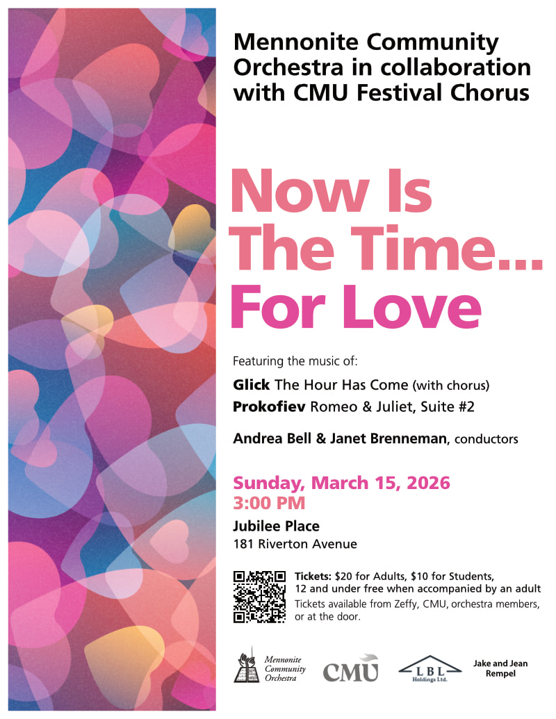The Mennonite Community Orchestra, in collaboration with the CMU Festival Chorus, will present “Now Is The Time…For Love”, a concert that will explore the importance of love, especially in our […]