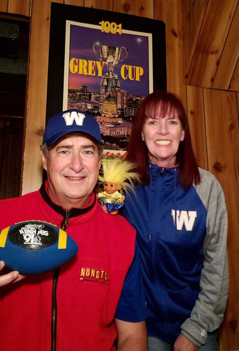 Loyal, not only to the Big Blue, but also the Grey Cup. When I asked the happily-ever-after-pair for a little information regarding their Bombers-Cup participation over the years, I must admit to being a tad shocked at the info supplied.