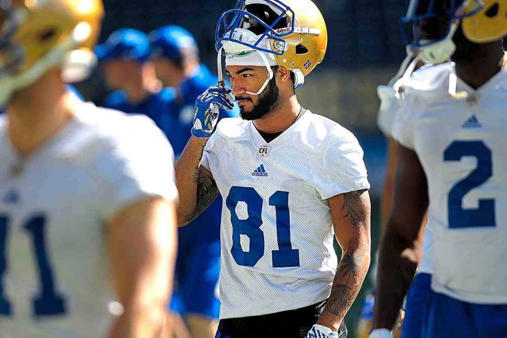 ANDREW RYAN / WINNIPEG FREE PRESS FILES Winnipeg Blue Bombers receiver Daniel Petermann had four receptions for 67 yards and a touchdown against the Roughriders in the Banjo Bowl.