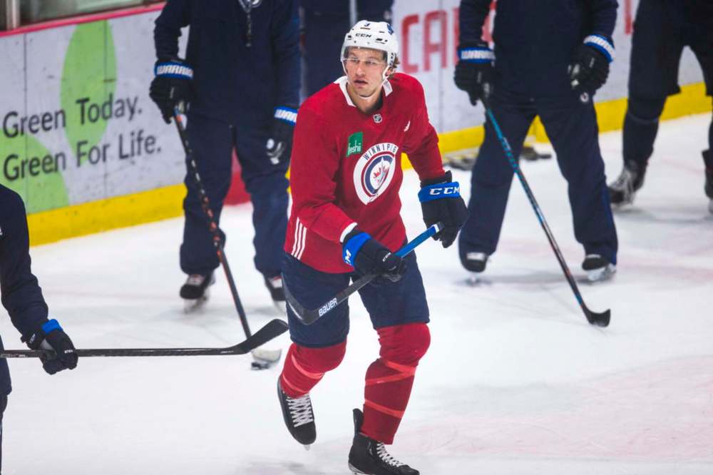 Jets winger Nikolaj Ehlers skated in drills Thursday but didn’t participate in a 25-minute scrimmage afterward.