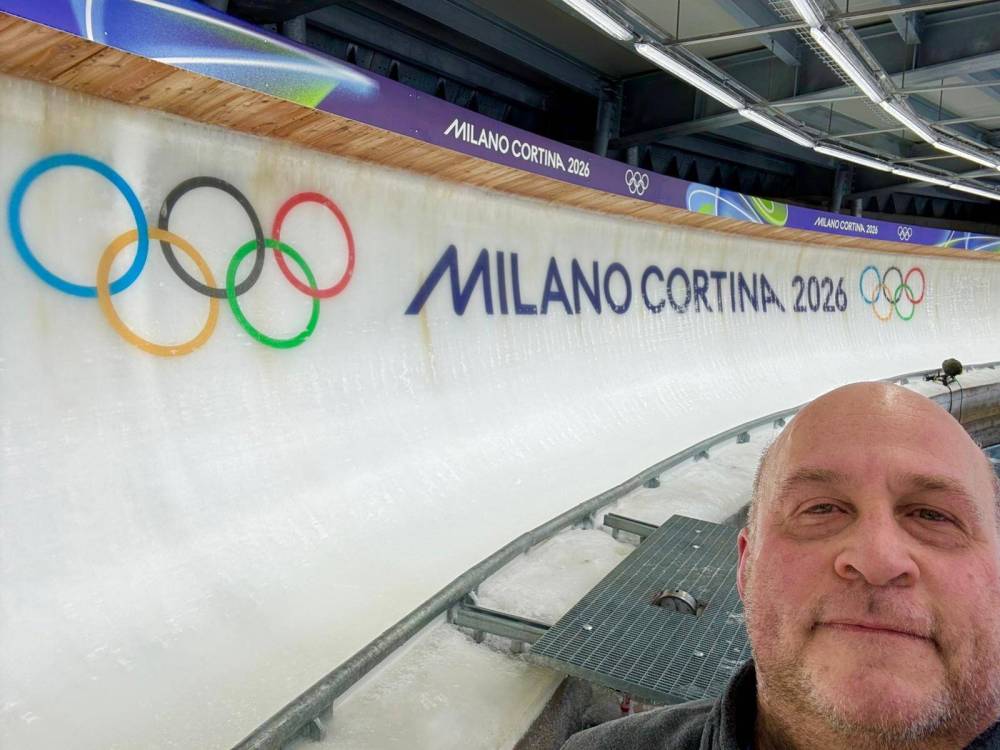 David Greaves takes a selfie at the 2026 Milan Cortina Games bobsled track. A former bobsledder, Greaves is currently the executive director of the Jewish National Fund of Manitoba and Saskatchewan and president of the Israeli Olympic Bobsleigh Skeleton Federation.