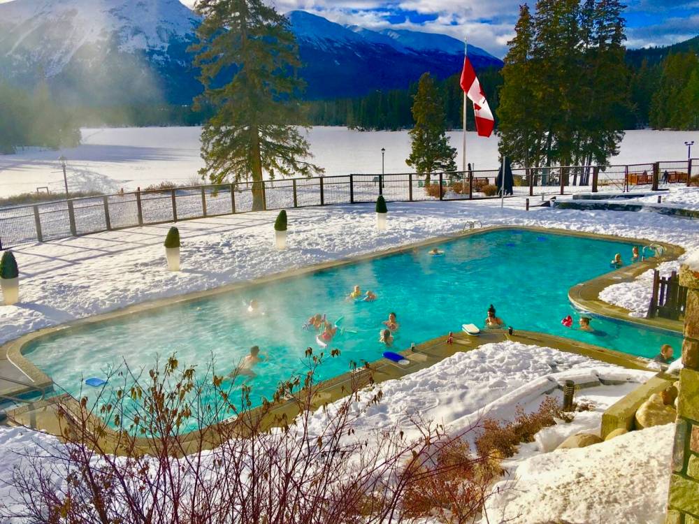 Jasper Park Lodge at Mildred Lake, where you can take a relaxing winter dip.
