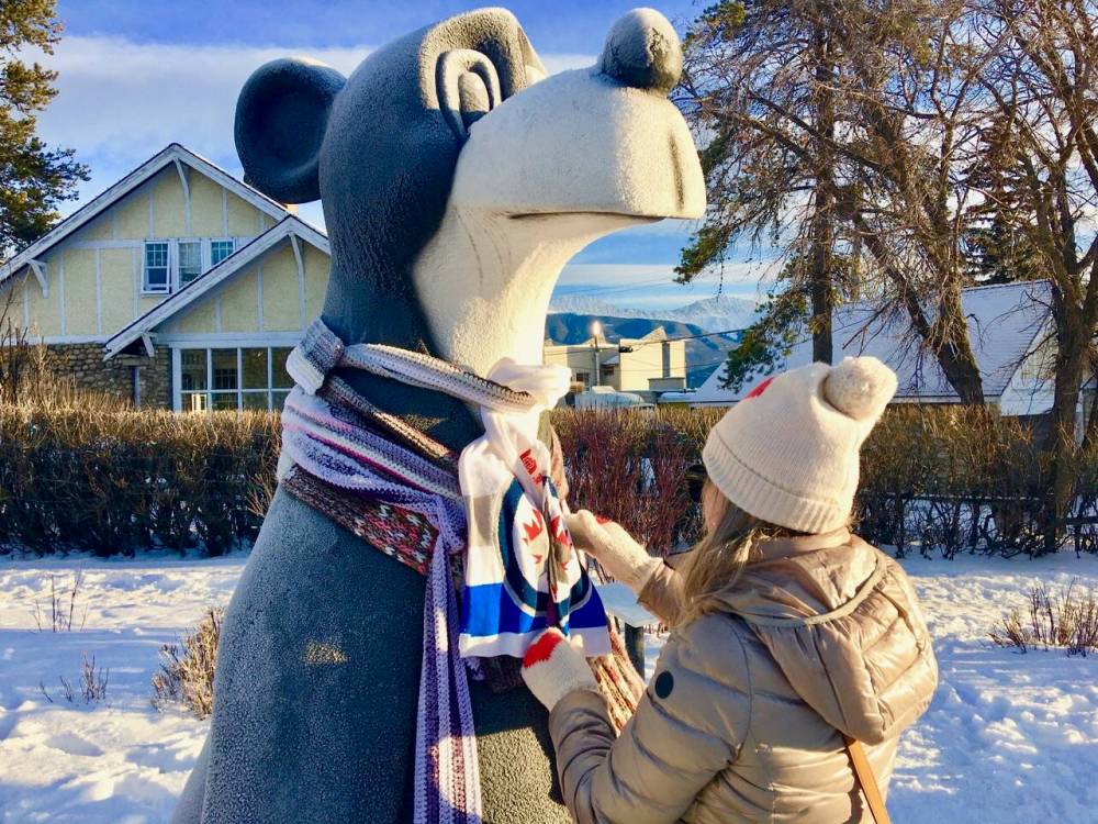 Jasper the Bear prevails as Jasper National Park’s mascot. He’s celebrated with plush toys, fridge magnets, beer and trash cans. Best known to boomers from cartoons, his creator, James Simpkins, grew up in our Luxton neighbourhood in Winnipeg. Reconnecting the bear to Winnipeg, on his midtown statue we wrapped a Jets scarf. In Edmonton Oilers country — and just after the Oilers lost to the Jets — we monitored our triumphant incursion daily. Twice, his scarf needed re-assembling.